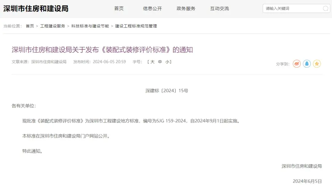 9月1日起实施!深圳地标《装配式装修评价标准》正式发布