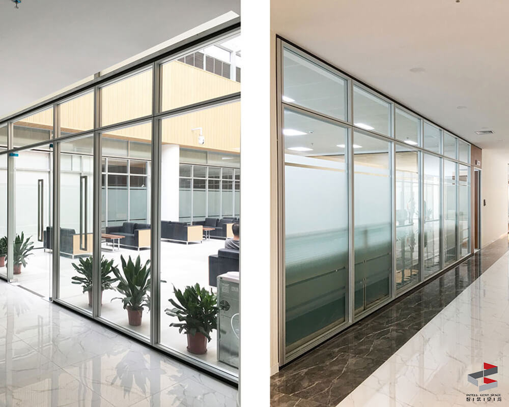 墙体外观:墙厚100mm,上下轨高25mm,玻璃框宽25mm, 模块间距4mm;